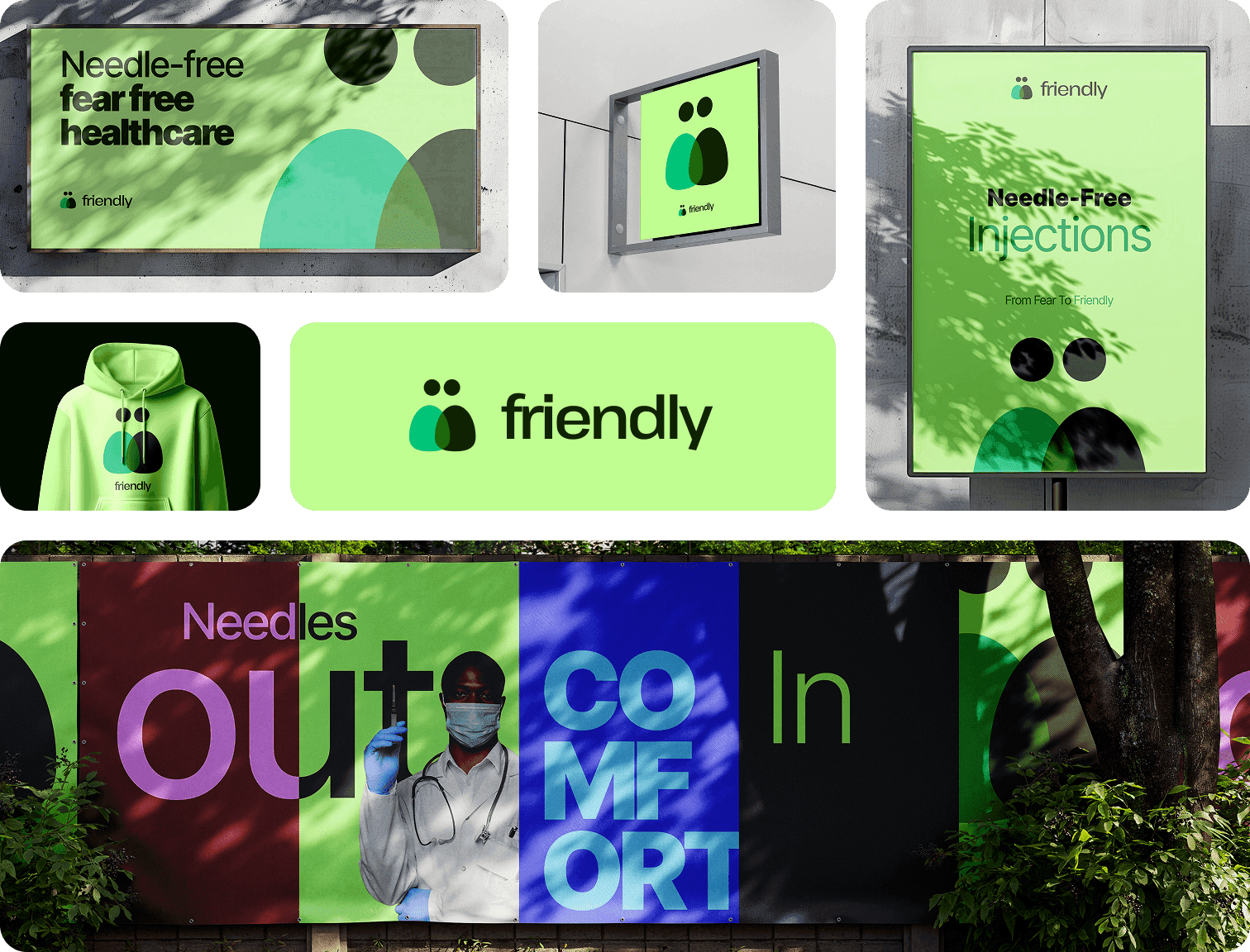 Friendly is a health-tech startup tackling needle phobia with pain-free medical tools. The brand feels warm, innovative, and empathetic; just like its mission.