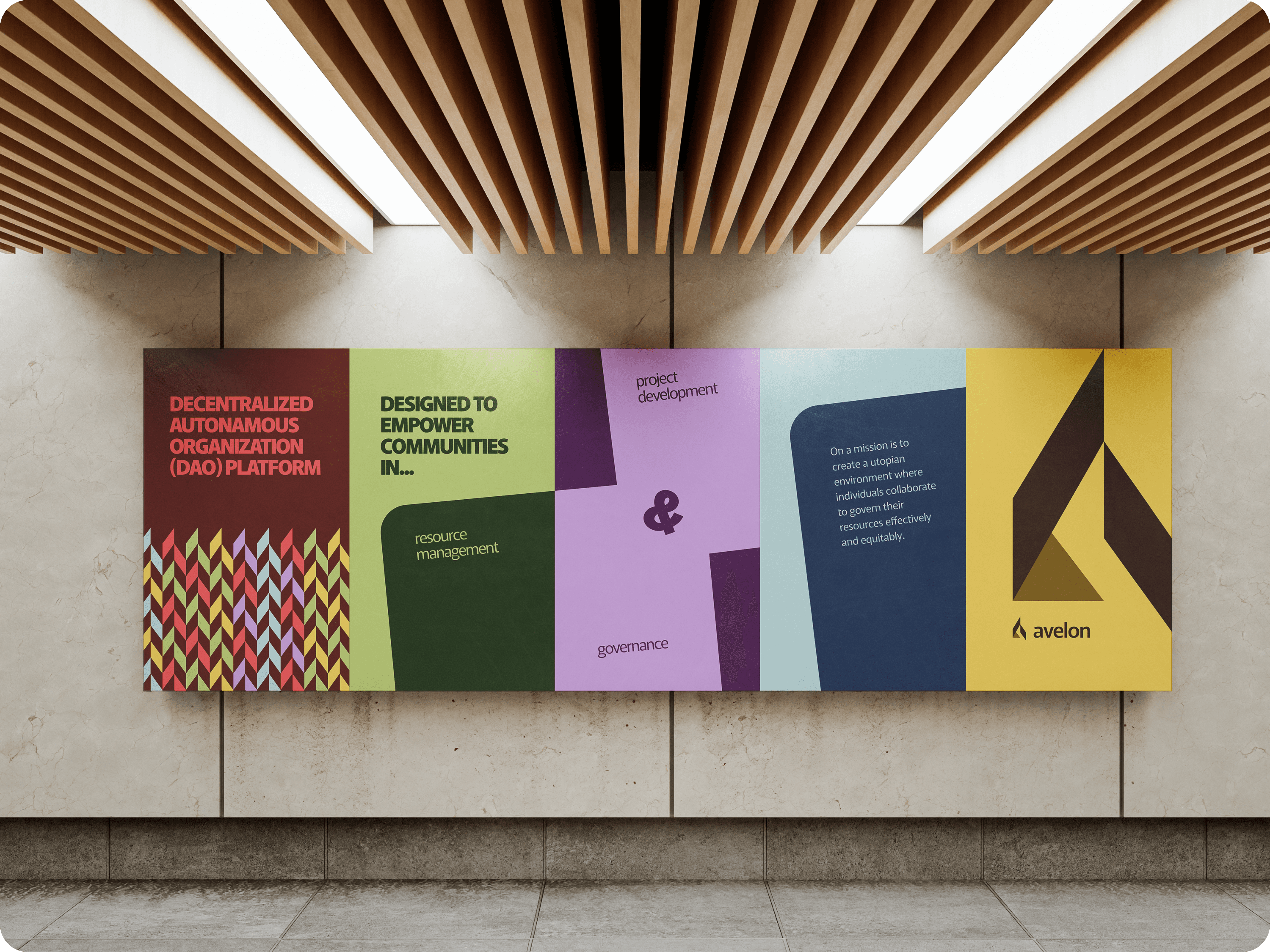 Avelon is a decentralized autonomous organization (DAO) platform designed to empower communities in resource management, governance, and project development. Avelon's mission is to create a utopian environment where individuals collaborate to govern their resources effectively and equitably. This case study outlines the branding process, design decisions, and visual identity developed for Avelon.